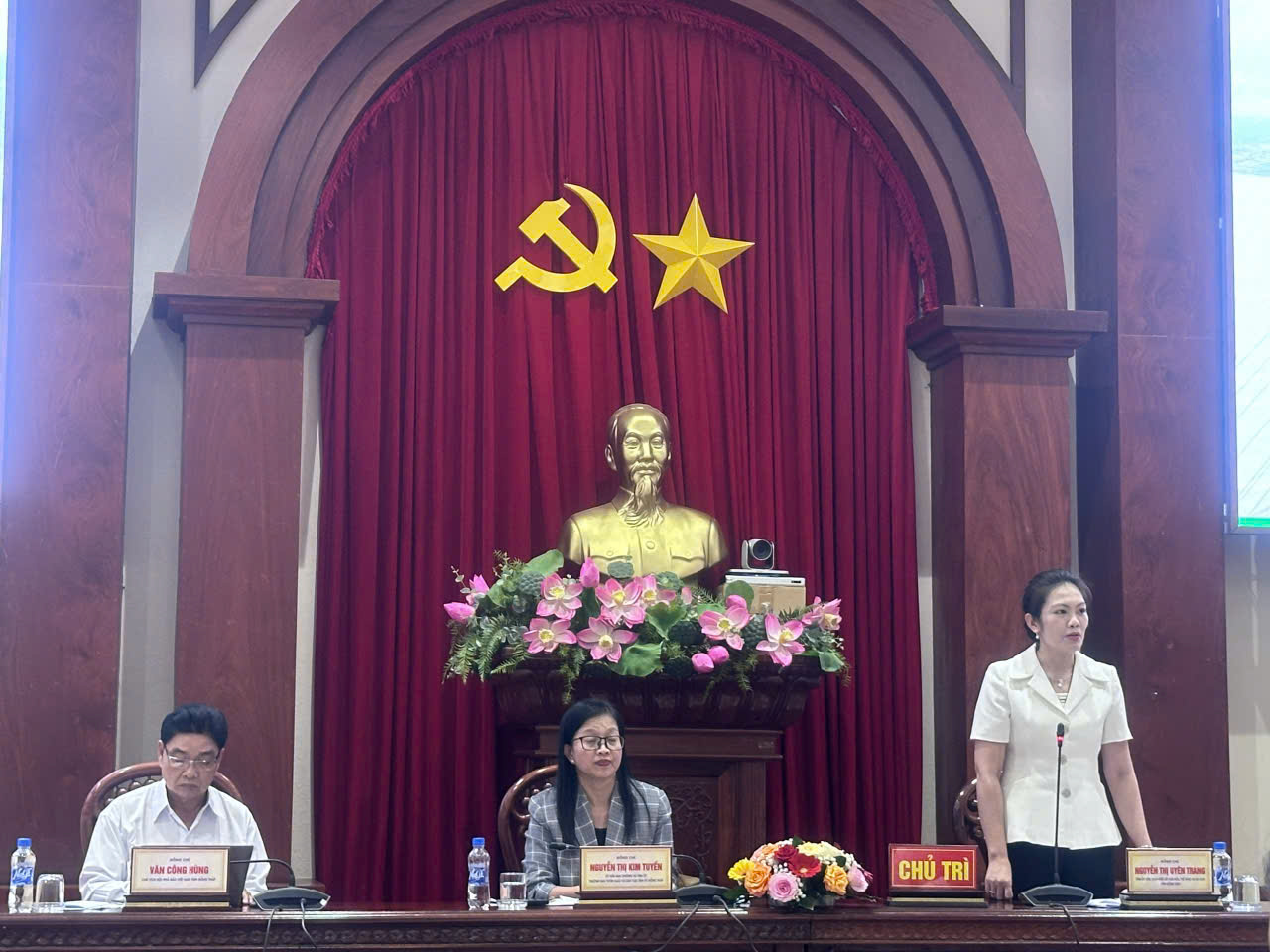 Chủ trì hội nghị có các đồng chí: Nguyễn Thị Kim Tuyến – Ủy viên Ban Thường vụ Tỉnh ủy, Trưởng Ban Tuyên giáo và Dân vận Tỉnh ủy; Nguyễn Thị Uyên Trang – Tỉnh ủy viên, Giám đốc Sở Văn hóa – Thể thao và Du lịch; Văn Công Hùng – Chủ tịch Hội Nhà báo tỉnh. Tham dự còn có lãnh đạo các sở, ngành và cơ quan báo chí trong, ngoài tỉnh.
