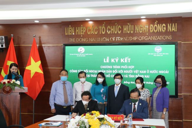 Ngày 29/10/2021 tại Hội trường Liên hiệp các tổ chức hữu nghị tỉnh Đồng Nai (DUFO), Ủy ban về Người Việt Nam ở nước ngoài (NVNONN) Thành phố Hồ Chí Minh và Liên hiệp các tổ chức hữu nghị tỉnh Đồng Nai đã tổ chức lễ ký kết chương trình phối hợp các hoạt động đối ngoại nhân dân đối với người Việt Nam ở nước ngoài tại TP. Hồ Chí Minh và tỉnh Đồng Nai.