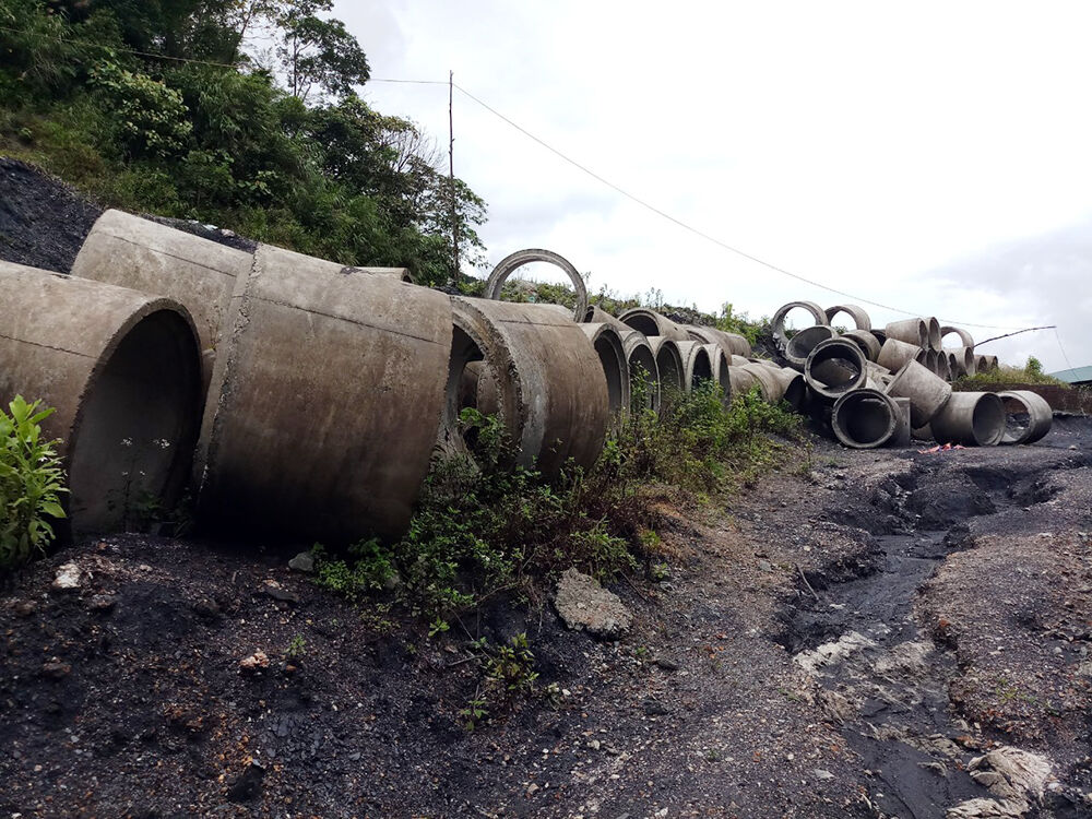 Vật liệu chất đống và tình trạng nền đường hư hỏng trên đoạn Km120 - Km127 (Đèo Ma Thì Hồ), QL 12
