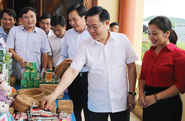 Phó Thủ tướng Vương Đình Huệ trong một chuyến thăm và làm việc tại Điện Biên