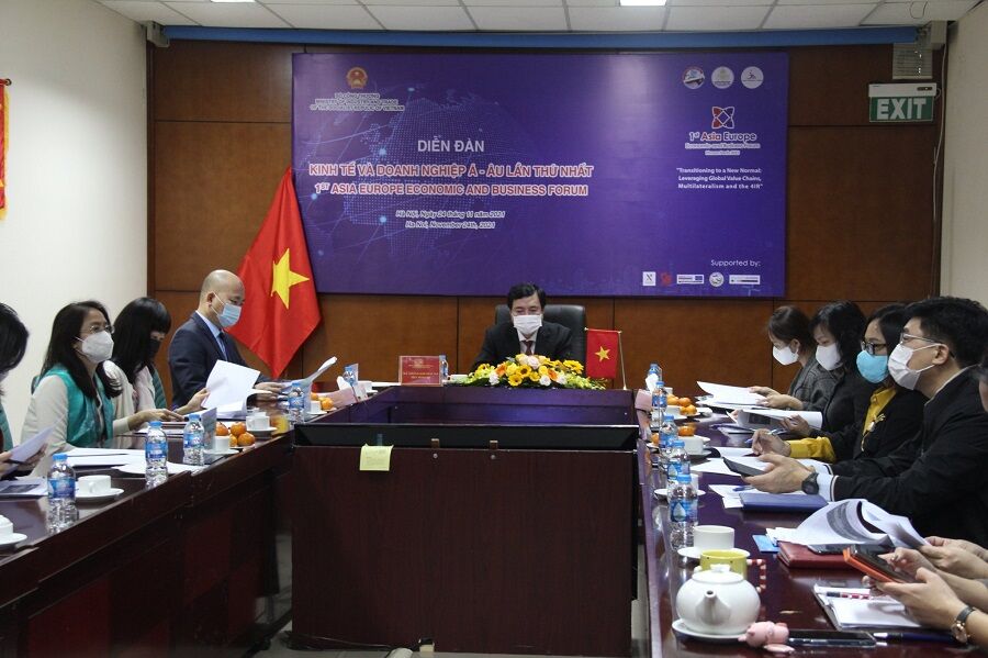 Là một thành viên có trách nhiệm, luôn tích cực tham dự các hoạt động trong khuôn khổ các kỳ Hội nghị Cấp cao Á – Âu, vì vậy, Thứ trưởng Bộ Công Thương Nguyễn Sinh Nhật Tân và đại diện Bộ Ngoại giao, Bộ Kế hoạch và Đầu tư, Bộ Thông tin và Truyền thông, Phòng Thương mại và Công nghiệp Việt Nam cùng Hiệp hội Phần mềm và Dịch vụ Công nghệ thông tin Việt Nam và một số Tập đoàn kinh tế, doanh nghiệp Việt Nam đã đại diện cho phía Việt Nam tham dự Diễn đàn AEEBF1 lần này bằng hình thức trực tuyến.