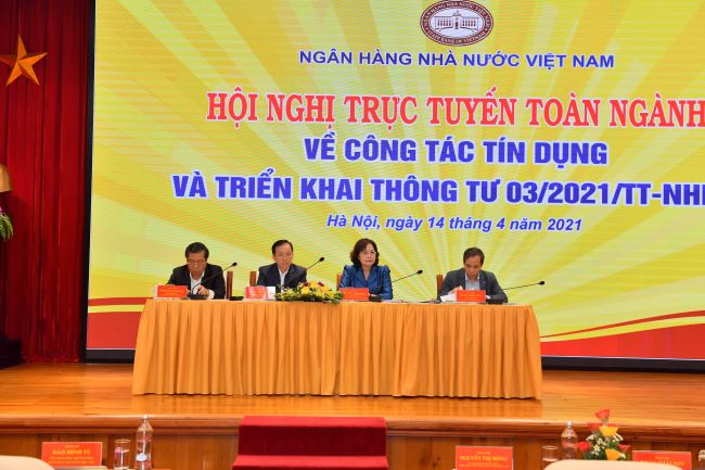 Hội nghị trực tuyến toàn ngành ngân hàng về công tác tín dụng và triển khai thông tư 03/2021/TT-NHNH được tổ chức ngày 14/4/2021.