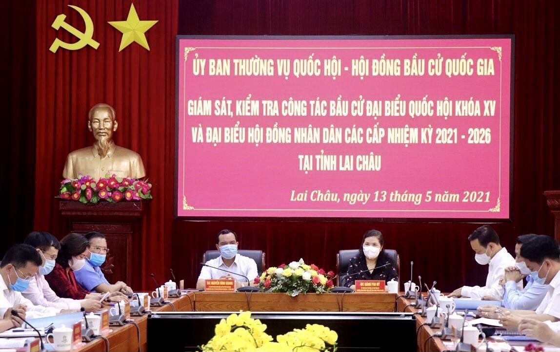 Biểu dương Lai Châu đã có cách làm sáng tạo trong công tác tuyên truyền, đồng chí đề nghị Lai Châu tiếp tục đẩy mạnh công tác tuyên truyền trên các phương tiện truyền thông với nhiều hình thức đa dạng, nội dung phong phú, nhất là tuần lễ sát ngày bầu cử. Tăng cường công tác bảo đảm an ninh, trật tự, an toàn xã hội và y tế, đặc biệt tại các địa bàn trọng điểm; các thời điểm sát ngày bầu cử; bảo đảm vệ sinh, an toàn thực phẩm, phòng, chống thiên tai, cháy nổ. Đảm bảo các điều kiện chu đáo cho cử tri đi bầu cử để ngày bầu cử thực sự vui tươi, dân chủ, đúng pháp luật, an toàn, tiết kiệm và thành công tốt đẹp. Tăng cường kiểm tra, giám sát công tác chuẩn bị bầu cử. Thực hiện tốt việc giải quyết khiếu nại, tố cáo nói chung, cũng như công tác bầu cử nói riêng theo luật định. Chỉ đạo chuẩn bị đầy đủ cơ sở vật chất và các điều kiện cần thiết phục vụ bầu cử. Phân công rõ ràng nhiệm vụ, chú trọng tập huấn kỹ năng, nghiệp vụ công tác bầu cử thật sâu sát, cụ thể, kỹ lưỡng cho các tổ chức bầu cử, nhất là Tổ bầu cử...