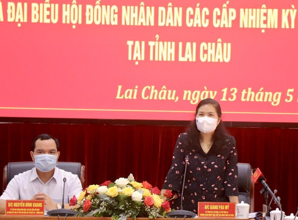 Làm việc với Đoàn công tác, về phía tỉnh Lai Châu có các đồng chí: Giàng Páo Mỷ - Ủy viên Ban Chấp hành Trung ương Đảng, Bí thư Tỉnh ủy, Trưởng Đoàn đại biểu Quốc hội tỉnh, Chủ tịch HĐND tỉnh; Trần Tiến Dũng - Phó Bí thư Tỉnh ủy, Chủ tịch UBND tỉnh, Chủ tịch Ủy ban bầu cử (UBBC) tỉnh; lãnh đạo HĐND, UBND, Ủy ban MTTQ Việt Nam tỉnh, Ủy viên UBBC tỉnh…