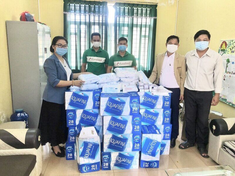 Trao quà từ nhà tài trợ - CQĐD Nam Trung Bộ - Tây Nguyên của Tạp chí Việt Nam Hội nhập và Công ty TNHH sản xuất thương mại rau quả thực phẩm an toàn Rasafood.