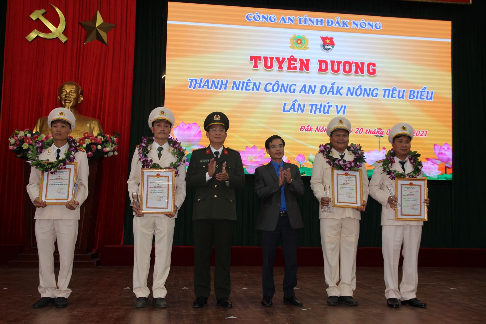 Đại tá Hồ Văn Mười, Giám đốc Công an tỉnh và lãnh đạo Tỉnh đoàn trao giải thưởng “Thanh niên Công an Đắk Nông tiêu biểu” lần thứ VI cho các cá nhân.