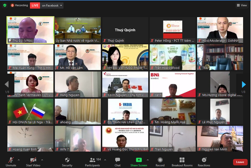 VNHN- Chiều 13-10, Ủy ban Nhà nước về người Việt Nam ở nước ngoài, Bộ Ngoại giao và Ủy ban người Việt Nam ở nước ngoài thành phố Hồ Chí Minh phối hợp với Cục Xúc tiến thương mại (Bộ Công Thương) và Hiệp hội Doanh nhân tư nhân Việt Nam (VPBA) tổ chức Tọa đàm trực tuyến với chủ đề "Doanh nhân kiều bào với mạng lưới tiêu thụ hàng hóa Việt Nam ở nước ngoài".