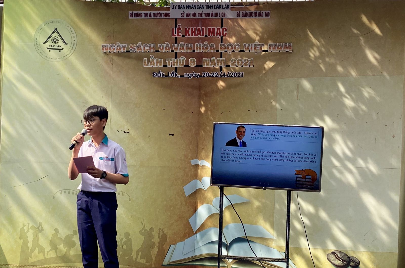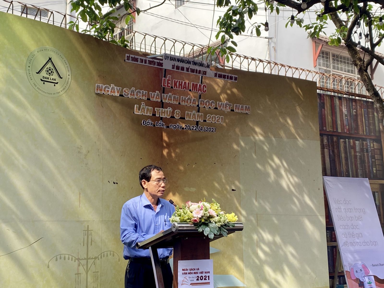 Phát biểu khai mạc, ông Nguyễn Ngọc Tý - Phó Giám đốc Sở TTTT tỉnh Đắk Lắk nhấn mạnh, từ năm 2015 đến năm 2019 hàng năm tỉnh Đắk Lắk đều tổ chức các hoạt động để tôn vinh sách vào ngày 21/4 với nhiều hình thức phong phú. Để tiếp tục phát huy những giá trị tốt đẹp về ngày sách và văn hóa đọc Việt Nam, tôn vinh các giá trị về sách trong đời sống xã hội, tôn vinh người đọc,…Với tinh thần đề cao tầm quan trọng của sách báo và tri thức trong đời sống, sự kiện ngày sách và văn hóa đọc Việt Nam đang trở thành một nét sinh hoạt văn hóa, văn minh của những người yêu mến sách báo cần tiếp tục được duy trì, phát huy, quảng bá.