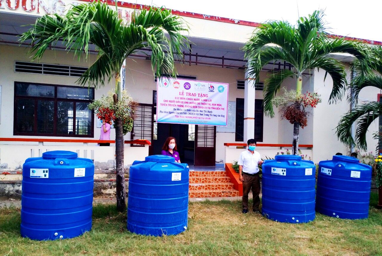 Trao bồn chứa nước loại 1.000 lít cho người dân đang bị hạn mặn.