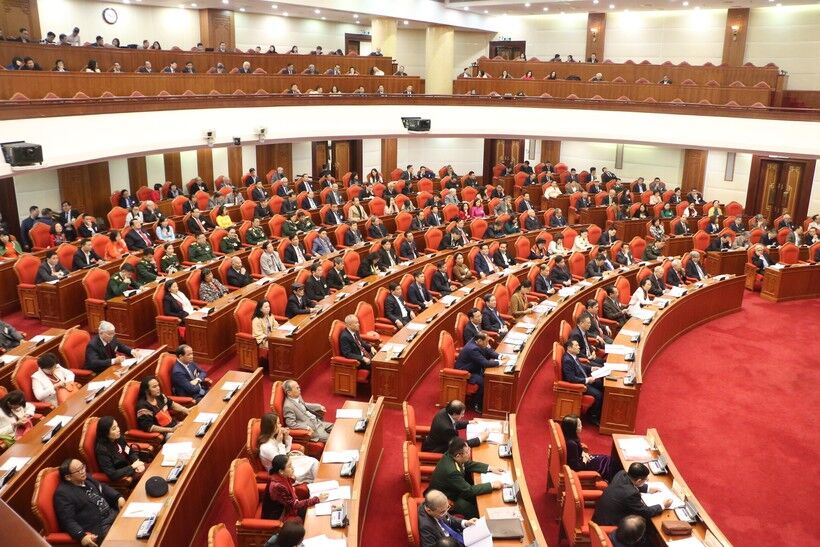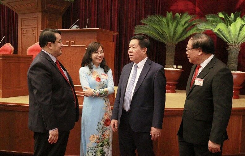 Thường trực Ban Bí thư Võ Văn Thưởng, Trưởng ban Tuyên giáo Trung ương Nguyễn Trọng Nghĩa và Phó thủ tướng Chính phủ Trần Hồng Hà cùng các đại biểu.