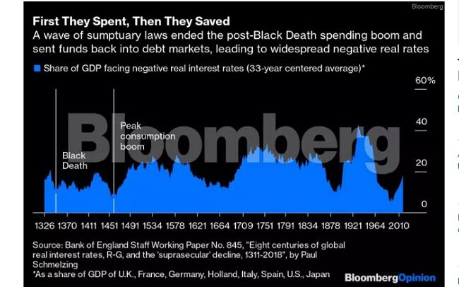 Chuyên gia Paul Schmelzing phân tích: Sự thay đổi trong hành vi tiêu dùng thể hiện rõ ràng hơn sau dịch bệnh. Cái Chết Đen không chỉ khiến dân số sụt giảm mà trải nghiệm đau thương về những cái chết bất thình lình đã tạo ra một động lực hưởng thụ khi người ta vẫn còn có thể.