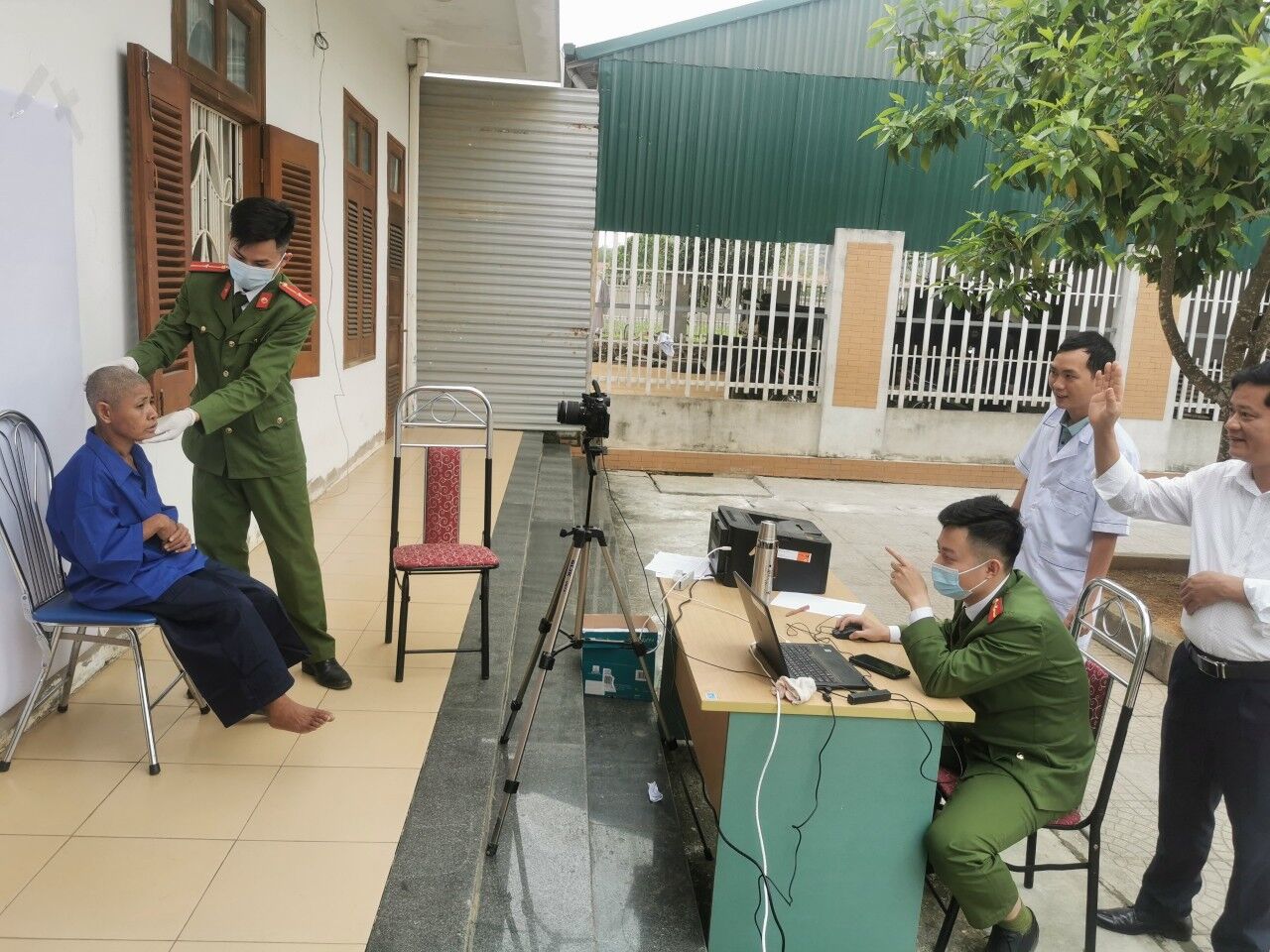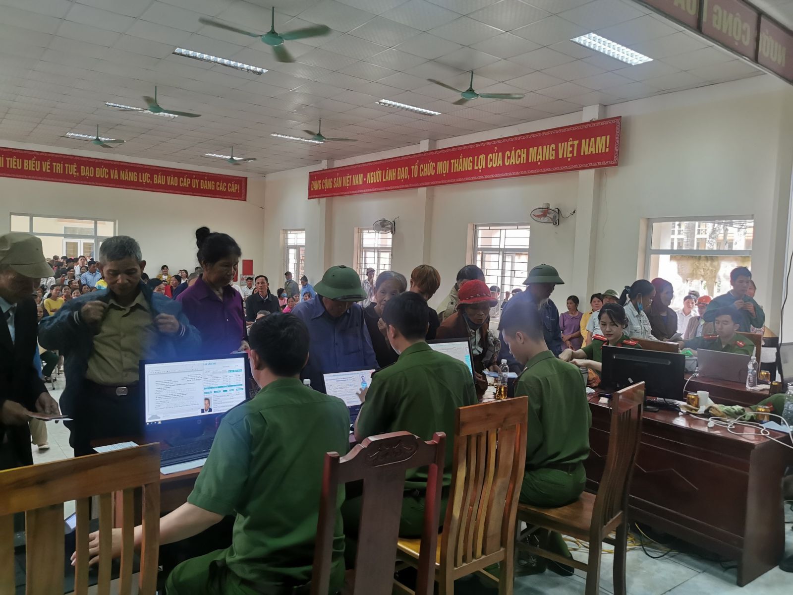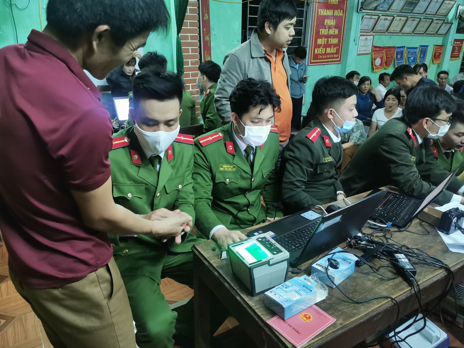 Cán bộ, chiến sĩ Công an Huyện Ngọc Lặc làm việc miệt mài tại các điểm lưu động
