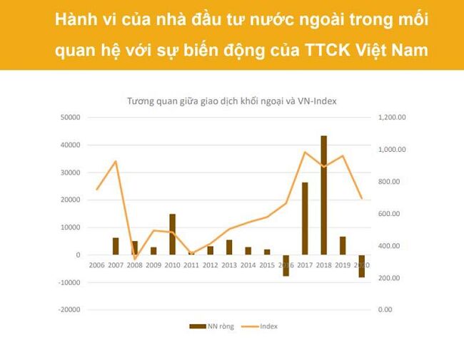 Đầu năm 2020, khối ngoại mua ròng tích cực trên TTCK và chỉ số VN-Index cũng đã tiến sát vùng 1.000 điểm trước khi quay đầu giảm mạnh khi đại dịch Covid-19 bùng phát trên thế giới, gây ra tình trạng bán tháo trên tất cả các TTCK.
