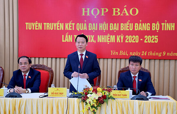 Chiều cùng ngày, Chiều 24/9, tại hội trường tầng 3 Trung tâm Hội nghị tỉnh, Tỉnh ủy Yên Bái tổ chức Họp báo tuyên truyền kết quả Đại hội đại biểu Đảng bộ tỉnh Yên Bái lần thứ XIX, nhiệm kỳ 2020 - 2025. Dự và chủ trì Họp báo có đồng chí Đỗ Đức Duy - Bí thư Tỉnh ủy khóa XIX, Chủ tịch UBND tỉnh; đồng chí Tạ Văn Long - Phó Bí thư Tỉnh ủy khóa XIX, Phó Chủ tịch Thường trực UBND tỉnh; đồng chí Trần Huy Tuấn - Phó Bí thư Tỉnh ủy khóa XIX, Trưởng Ban Tổ chức Tỉnh ủy. Tham dự buổi họp báo có các đồng chí trong Ban Thường vụ Tỉnh ủy; lãnh đạo các ban, sở, ngành của tỉnh; lãnh đạo và phóng viên các cơ quan thông tấn báo chí Trung ương, cơ quan báo chí của tỉnh.