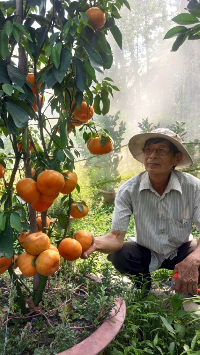 Hiện tại vườn nhà của ông Hồng, ngoài trồng quýt hồng trong chậu kiểng ra, ông cũng đang trồng bưởi trong chậu rất đẹp, ông chia sẻ “Cách đây 3 năm ông mua cây giống Bưởi diễn này ở Hà Nội về trồng tổng cộng 18 cây trong chậu, đất ở đây trồng vẫn tốt bình thường, nay đã có 2 cây đang ra hoa và 9 cây ra trái xum xuê, chín có màu vàng, tròn trịa, lạ mắt; trong số 9 cây đang có trái chín, thì cách đây 2 tháng thương lái ở TP.Hồ Chí Minh đã đến đặt mua hết với tổng cộng 40 triệu đồng, khoảng tuần nữa sẽ đến chuyển hàng về bán Tết cho người chơi kiểng về làm cảnh, trưng Tết, giờ tôi không còn chậu nào để bán”.