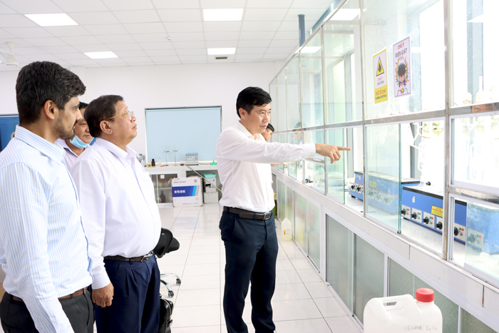 Chủ tịch Ủy ban nhân dân tỉnh Đồng Tháp, ông Phạm Thiện Nghĩa tham quan Công ty Trách nhiệm hữu hạn Dầu gạo Sethia Hemraj – (Ảnh: Internet)