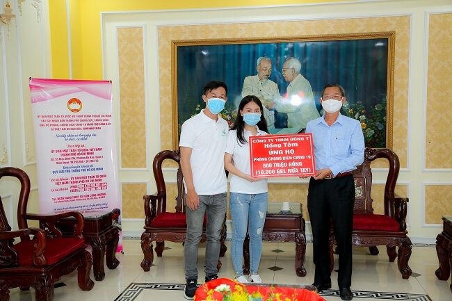 Chiều ngày 10/4/2020 tại trụ sở Uỷ ban Trung Ương Mặt trận Tổ Quốc Việt Nam (MTTQVN) Thành phố Hồ Chí Minh, Bà Nguyễn Tuệ Nghi - Tổng Giám đốc Công ty TNHH Đông Y Hồng Tâm cùng chồng là ông Hứa Gia An đã thay mặt Ban lãnh đạo Công ty trao cho ông Lý Ngọc Thạch - Uỷ Viên Ban Thường Trực, Trưởng Ban Dân Chủ- Pháp Luật Uỷ Ban MTTQVN Thành phố Hồ Chí Minh 10.000 chai xịt/gel kháng khuẩn cá nhân để ủng hộ công tác phòng chóng dịch Covid - 19 có tổng trị giá trên 500 triệu đồng.