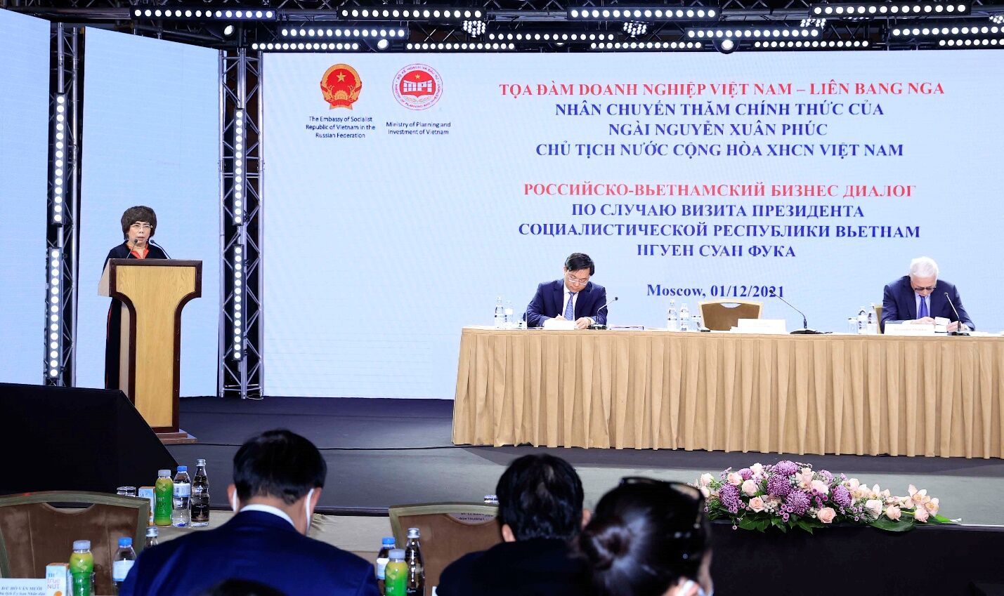 Diễn đàn Doanh nghiệp Việt – Nga ngày 1/12 là một sự kiện trong khuôn khổ chuyến công tác. Phát biểu tại Diễn đàn, Chủ tịch nước cho biết, trong cuộc hội đàm dài gần 4 tiếng với Tổng thống Nga Vladimir Putin trước đó, hai bên đã tập trung thảo luận nhiều nhất về thương mại đầu tư, phát triển hình thức liên doanh. Nhấn mạnh tiềm năng dư địa của hợp tác đầu tư giữa hai nước còn rất lớn, Chủ tịch nước cho rằng kim ngạch thương mại hai chiều của hai nước với con số trên 5 tỉ USD, số lượng 150 dự án với tổng mức đầu tư 1 tỉ USD vẫn chưa tương xứng với tiềm năng.
