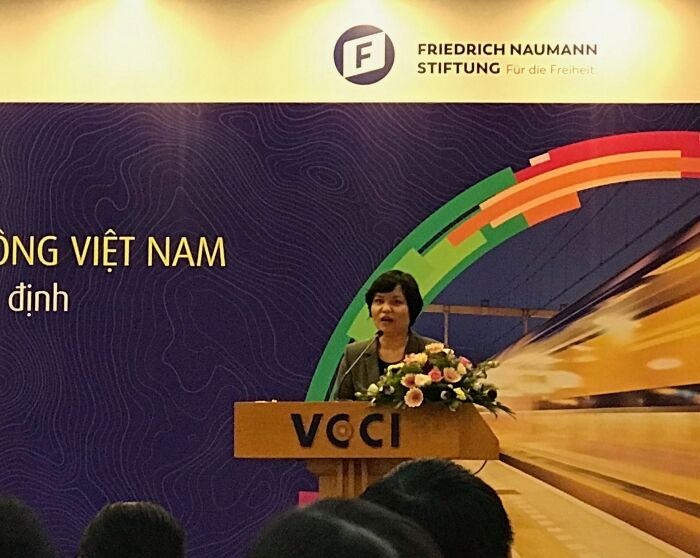 VNHN - Sáng 23/10, Phòng Thương mại và Công nghiệp Việt Nam (VCCI) phối hợp với Viện Friedrich Naumann Foundation for Freedom (FNF) tổ chức Hội thảo "Ngành Tài chính - Viễn thông Việt Nam trước cơ hội và thách thức từ EVFTA" tại Hà Nội.