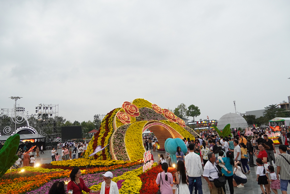 Du khách háo hức đổ về khu vực lễ hội, mang theo niềm mong đợi được hòa mình vào “Sắc hoa ngày mới”
