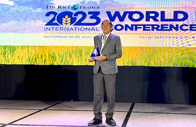 Ông Hồ Quang Cua nhận giải Gạo ngon nhất thế giới năm 2023 tổ chức tại Philippines cho Gạo Ông Cua ST25 của Việt Nam. Ảnh: NVCC