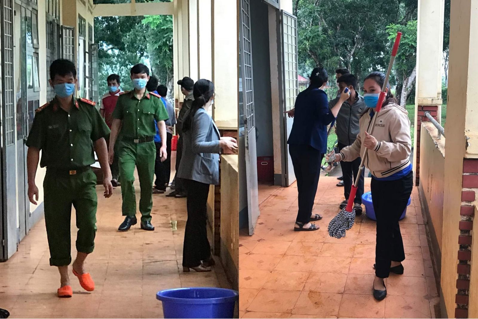 Lau dọn trường học để chuẩn bị đón bà con về cách ly.