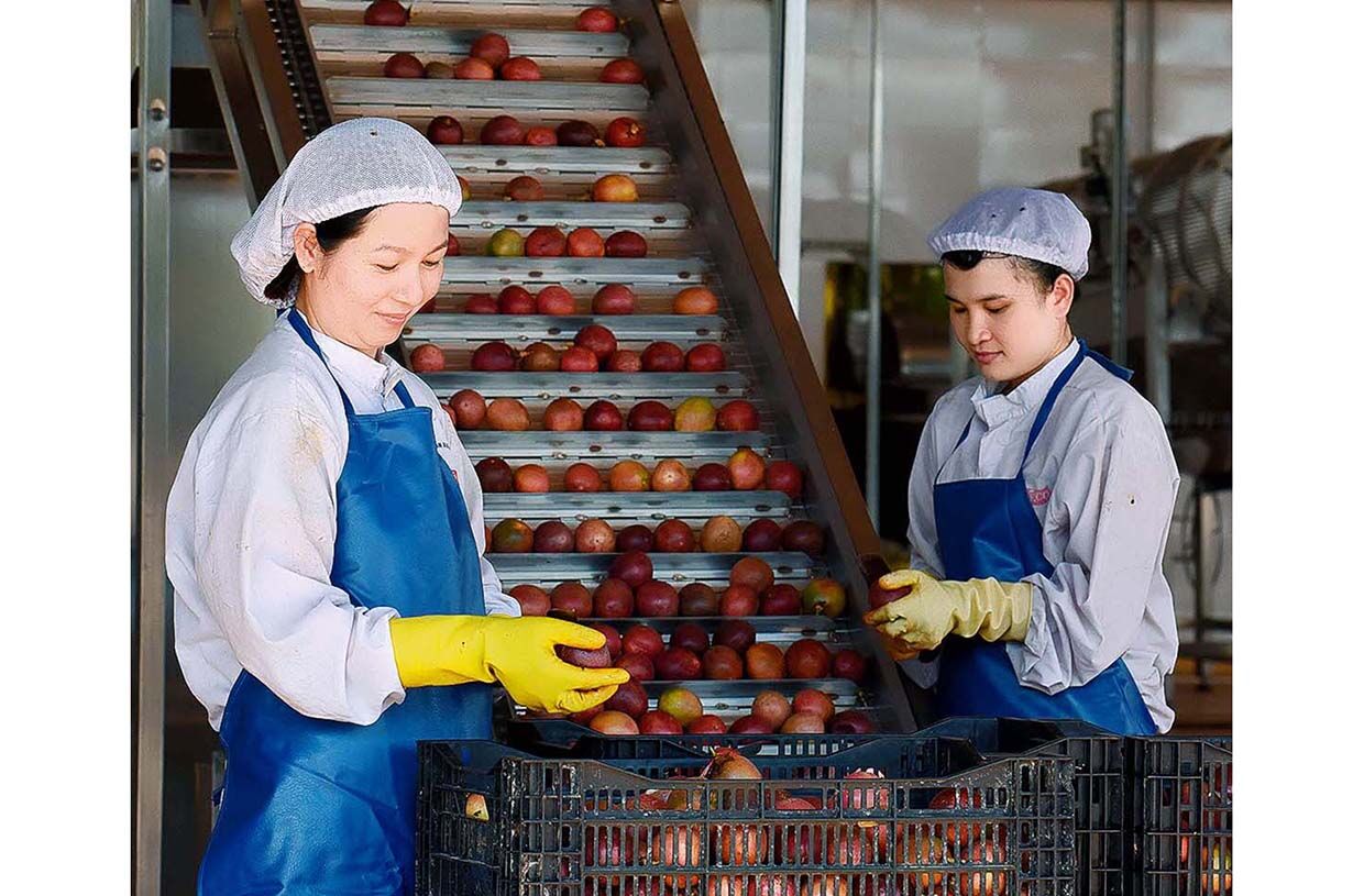 Công đoạn sơ chế chanh dây tại Công ty TNHH một thành viên Xuất nhập khẩu rau quả DOVECO. (Ảnh Đức Thuỵ)