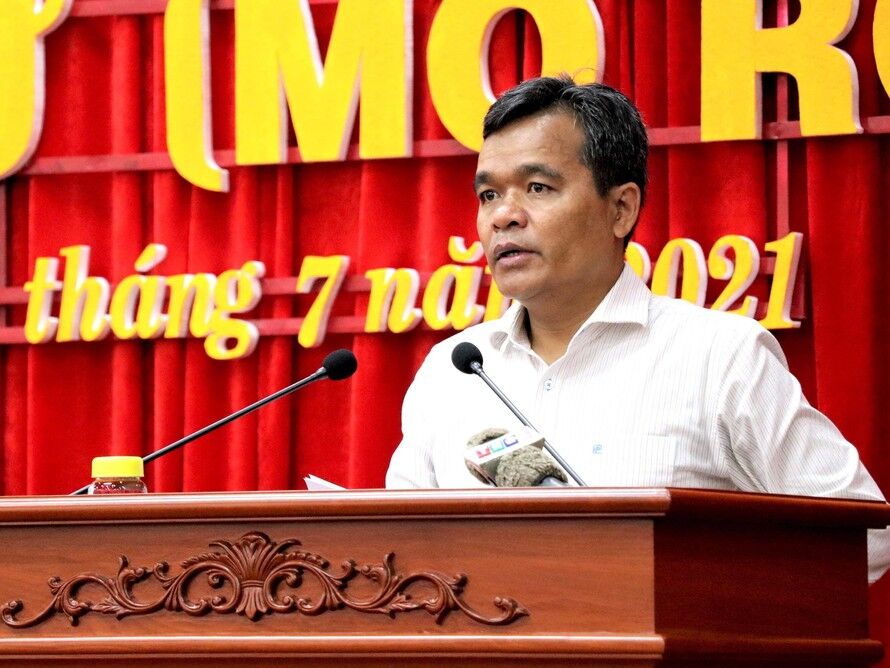 Bí thư Tỉnh ủy Gia Lai Hồ Văn Niên phát biểu khai mạc hội nghị (Ảnh: Tiền Lê).