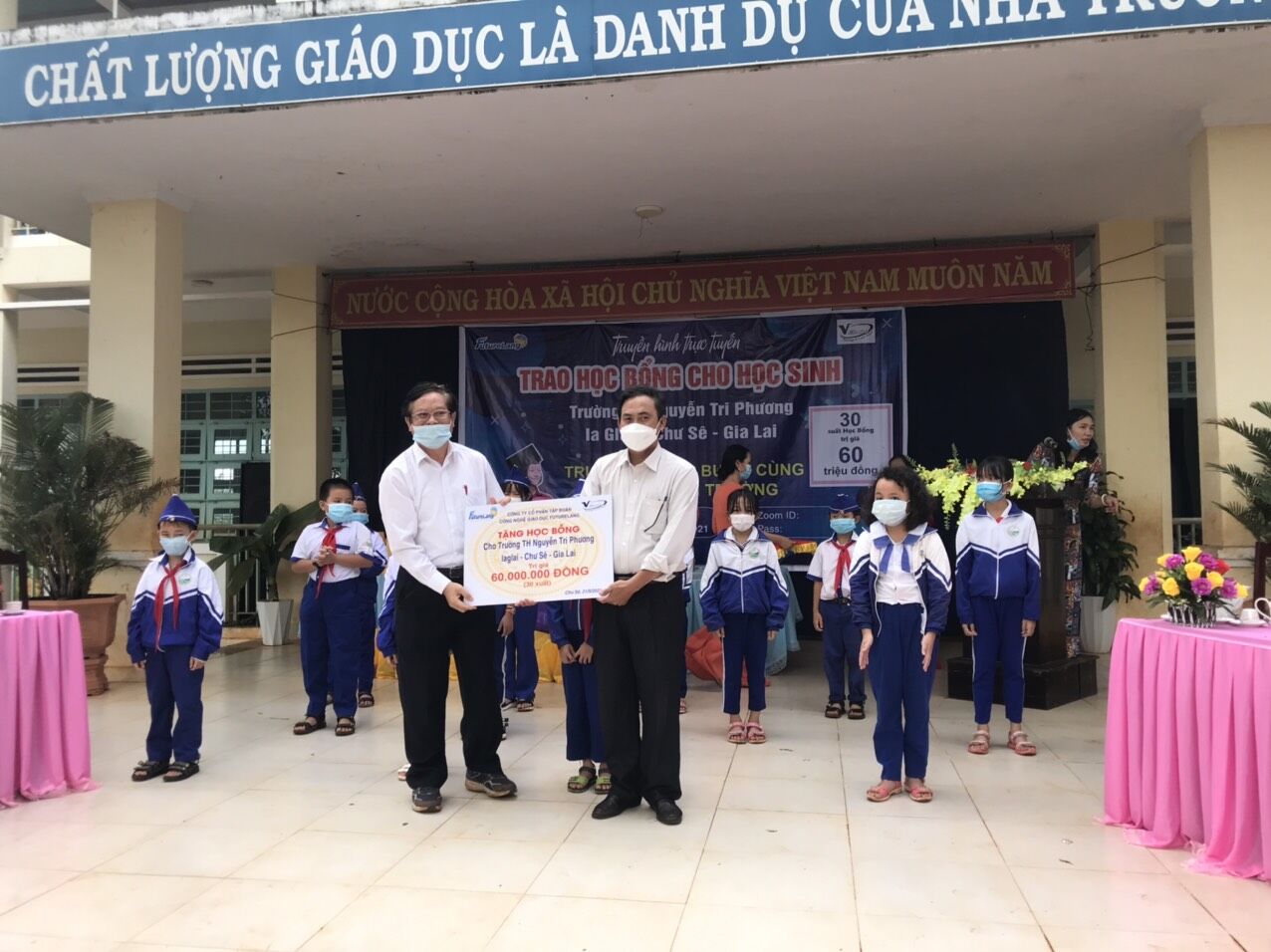 Đặc biệt, nhân dịp này ông Nguyễn Dũng đã gieo duyên kết nối được Tập Đoàn Công Nghệ Giáo Dục FutureLang (Hà Nội), đại diện Tập đoàn & hội khuyến học tỉnh Gia Lai trao tặng học bổng khuyến học cho mỗi trường 30 cháu, trị giá 60 triệu đồng/một trường bằng khoá học tiếng Anh…Tổng giá trị trao cho 5 trường là 300 triệu đồng. Thật vô cùng sâu sắc và ý nghĩa chưa từng có đối với các trường vùng sâu vùng xa.