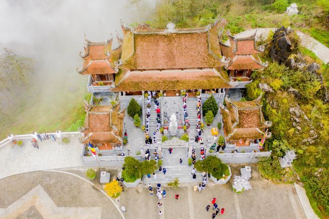 Tọa lạc từ độ cao 2.900 m đến đỉnh thiêng Fansipan là quần thể tâm linh kỳ vĩ, tựa như kiệt tác giữa mây ngàn gió núi. Đi dạo trên những con đường rợp cờ Phật giáo, ngắm nhìn Đại tượng Phật A Di Đà từ bi, đến chiêm bái quần thể Kim Sơn Bảo Thắng Tự uy nghiêm trong bảng lảng mây bay như khiến du khách thấy lòng bình an, thanh tịnh. Đặc biệt, trong lòng Đại tượng Phật A Di Đà còn là nơi lưu giữ xá lợi Phật, được cho là mang đến những màu nhiệm. Mỗi năm, vào dịp Tết Nguyên đán, hàng nghìn Phật tử từ khắp nơi đều đổ về Fansipan để chiêm bái, cầu an, mong một năm mới thuận lợi, hanh thông.