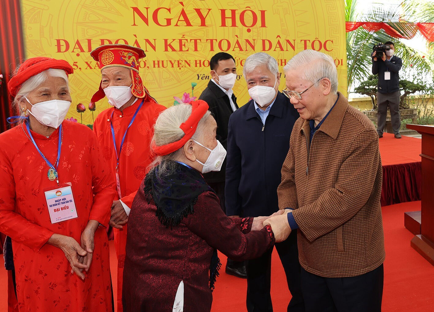 Tổng Bí thư Nguyễn Phú Trọng thăm hỏi nhân dân trên địa bàn dân cư thôn 5, xã Yên Sở, huyện Hoài Đức, thành phố Hà Nội tại Ngày hội Đại đoàn kết toàn dân tộc_Ảnh: TTXVN