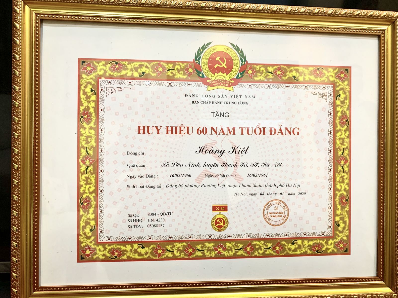 Huy hiệu 60 năm tuổi Đảng - sự ghi nhận của Đảng, Nhà nước với những đóng góp ý nghĩa của GS.TS Hoàng Đức Kiệt.
