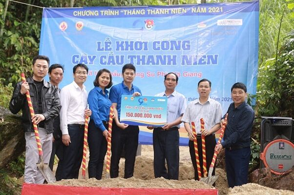 Nhân dịp này, Đoàn Thanh niên Cục Quản trị A, Văn phòng Trung ương Đảng đại diện cho Đoàn Thanh niên Văn phòng Trung ương đã phối hợp với các đơn vị đoàn vượt gần 300 km đồi núi tới hỗ trợ cho bà con và nhân dân xã Hồ Thầu, huyện Hoàng Su Phì, tỉnh Hà Giang khởi công “cây cầu Thanh niên” với chiều dài 34m, rộng 3m nối giữa hai thôn Tân Thành và thôn Đoàn Kết với tổng kinh phí hỗ trợ là 150 triệu. Từ đó, giúp việc đi lại của bà con trở lên thuận lợi hơn, tránh những nguy hiểm khi phải đi những cây cầu tre, cầu gỗ không an toàn.
