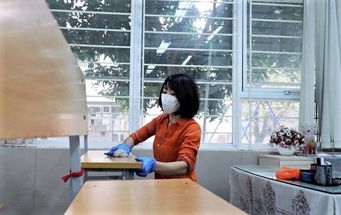 Bà Nguyễn Mỹ Hảo - Hiệu trưởng Trường THCS Nghĩa Tân (quận Cầu Giấy) cho biết: Ngoài việc sát trùng khử khuẩn trường lớp, trang thiết bị giảng dạy... Ban Giám hiệu nhà trường, cùng đại diện Hội phụ huynh các khối lớp học đã chuẩn bị rất nhiều khẩu trang, cồn sát khuẩn, dung dịch rửa tay khô để chờ đón khi học sinh chính thức trở lại lớp học, sẽ sử dụng phòng chống dịch trong tời gian tới.