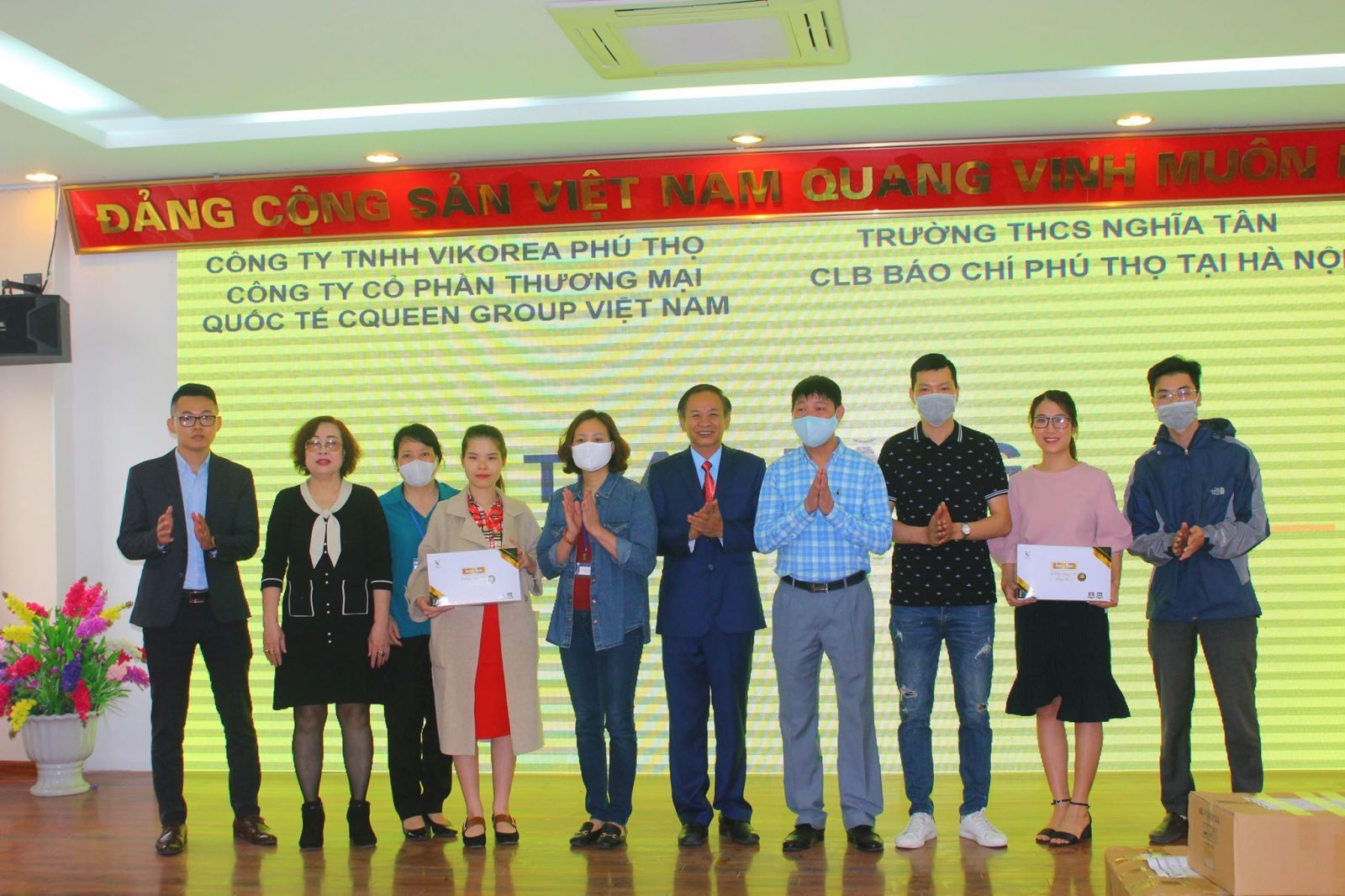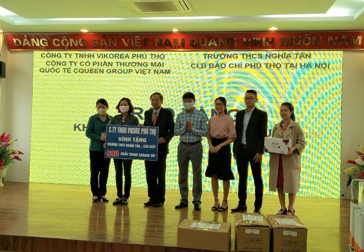 Cũng trong sáng 14/3, đại diện Câu lạc bộ Báo chí Phú Thọ tại Hà Nội, cùng đại diện các đơn vị doanh nghiệp là công ty Vikorea Phú Thọ và CQueen Group đã hỗ trợ trao tặng khẩu trang, dung dịch rửa tay khô, cồn sát trùng cho giáo viên, học sinh các Trường THCS Nghĩa Tân, và Trường THCS-THPT Nguyễn Bỉnh Khiêm (quận Cầu Giấy, Hà Nội).