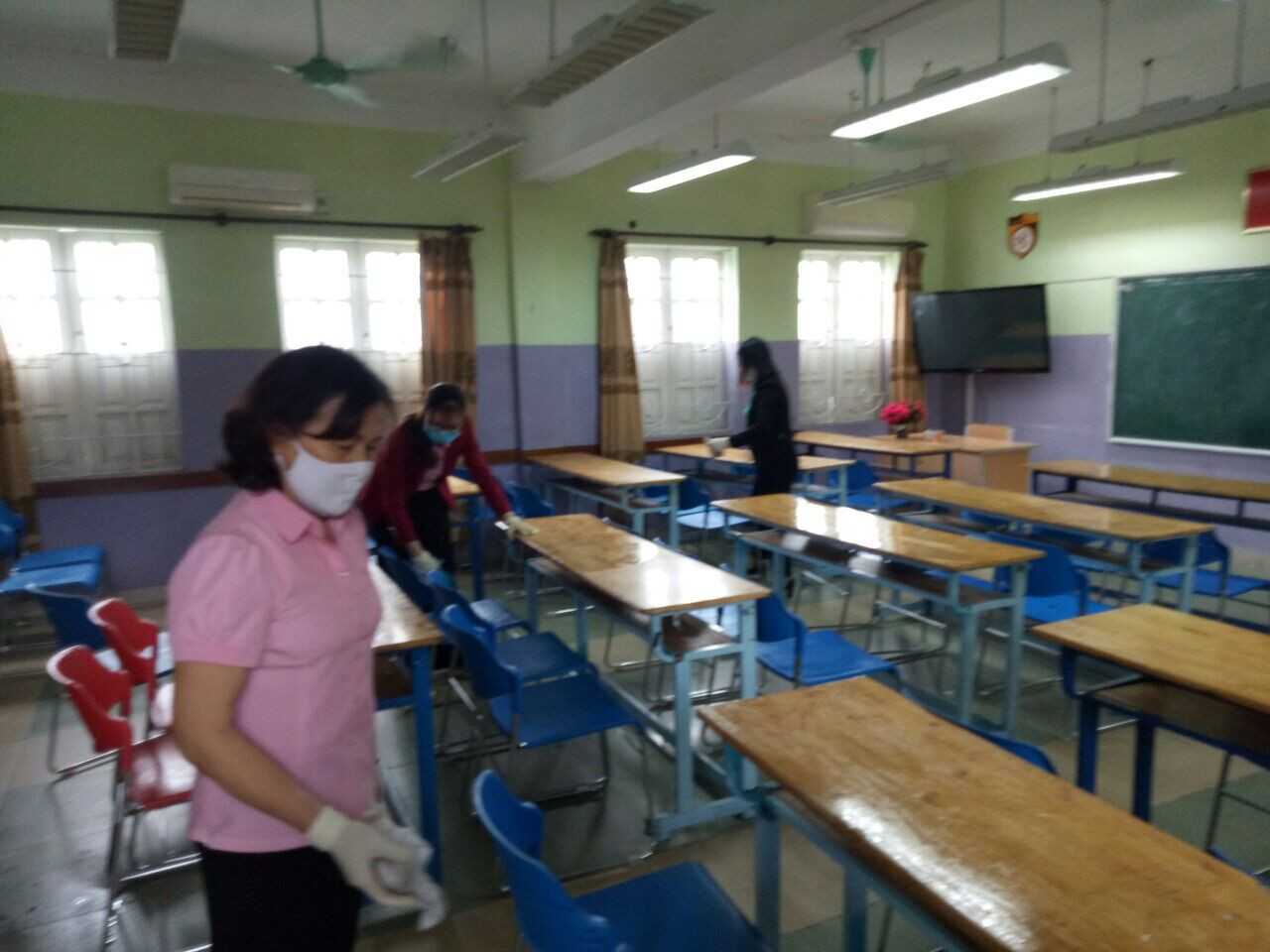 Theo Thầy Đàm Tiến Nam - Hiệu trưởng Trường THCS Nguyễn Bỉnh Khiêm (quận Cầu Giấy, Hà Nội) cho biết: Sau khi học sinh được nghỉ học vì dịch Covid-19, Ban Giám hiệu nhà trường thường xuyên tổ chức mỗi tuần một buổi sát khuẩn, lau dọn vệ sinh, phun khử trùng toàn trường lớp bằng cồn sát trùng theo khuyến cáo hướng dẫn của Bộ Y tế.