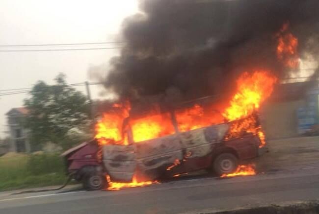 Sau khi kéo về để sửa chữa, trên đường di chuyển qua bến xe khách Hồng Lĩnh thì chiếc xe bất ngờ bén lửa bốc cháy dữ dội, khói đen bốc lên thành cột cao.