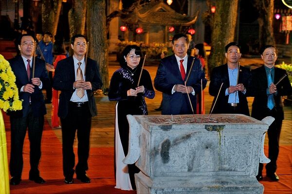 Phó Chủ tịch nước Đặng Thị Ngọc Thịnh cùng các đại biểu dâng hương tưởng niệm 685 năm ngày viên tịch của Đệ Tam Tổ Trúc Lâm Huyền Quang Tôn giả.