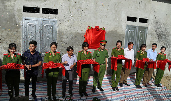 Thiếu tướng, GS.TS Nguyễn Đắc Hoan, Phó Giám đốc Học viện và đại diện Công an tỉnh Điện Biên, đại diện nhà tài trợ và chính quyền địa phương cắt băng khánh thành nhà bán trú.