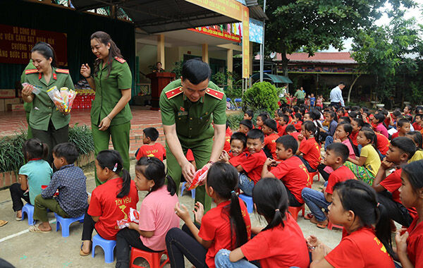Bên cạnh đó, đoàn cũng đã trao 80 phần quà tặng cho các gia đình chính sách, gia đình có hoàn cảnh khó khăn và các em học sinh nghèo vượt khó vươn lên học giỏi với tổng trị 40 triệu, trao hơn 2.800 chai dầu gội và 80 thùng bánh kẹo. Đặc biệt, đây cũng là năm học thứ 3 Đoàn tình nguyện của Học viện CSND tham gia Dự án “Nuôi em” với nội dung nhận hỗ trợ cơm trưa cho 200 em học sinh có hoàn cảnh khó khăn trong năm học 2020 - 2021 với tổng trị giá 280 triệu đồng.