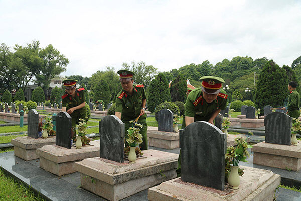 Hoạt động tri ân các anh hùng liệt sĩ tại Nghĩa trang Quốc gia A1 của đoàn cán bộ, học viên Học viện CSND.