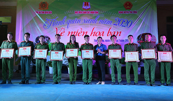 VNHN - Thiết thực hưởng ứng chiến dịch Thanh niên tình nguyện hè do Trung ương Đoàn Thanh niên Cộng sản Hồ Chí Minh và Đoàn Thanh niên Bộ Công an phát động, từ ngày 26/6 đến ngày 8/7/2020, Học viện Cảnh sát nhân dân đã tổ chức chương trình tình nguyện Hè năm 2020 với chủ đề “Hành quân xanh - Về miền hoa ban” tại xã Tủa Thàng, huyện Tủa Chùa và xã Nậm Nèn, huyện Mường Chà, tỉnh Điện Biên.