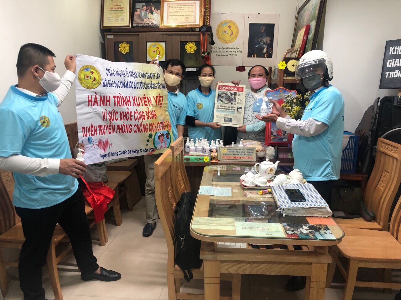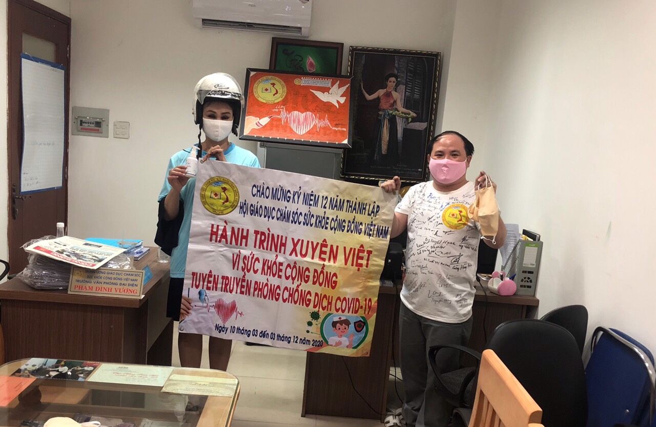 Hành trình xuyên việt vì cộng đồng tuyên truyền phòng chống dịch bệnh covid -19" nhằm tuyên truyền, giáo dục về ý thức toàn xã hội quan tâm đến sức khỏe cộng đồng, tăng cường bảo vệ và nâng cao sức khỏe nhân dân trong tình hình mới nhắc nhỡ mọi người làm theo khuyến cáo của Bộ Y Tế, Trung ương Hội Giáo dục chăm sóc sức khỏe cộng đồng Việt Nam cùng các cơ quan chức năng phòng chống dịch Covid -19./.