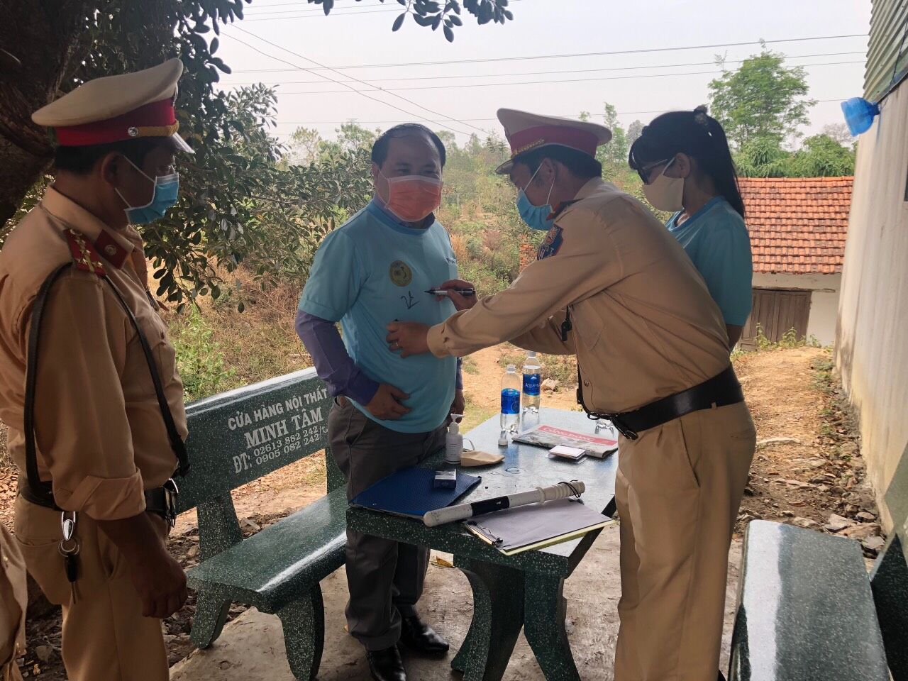 Các chiến sĩ CSGT đang ký tên lưu niệm lên áo Ông Phạm Đình Vương - Ủy viên thường vụ Trung ương Hội, Trưởng Văn phòng Đại diện Hội Giáo dục chăm sóc sức khỏe cộng đồng Việt Nam tại Tp.HCM, Giám đốc Trung tâm UNESCO Văn hóa Thông tin Truyền thông, Trưởng đoàn xuyên Việt.