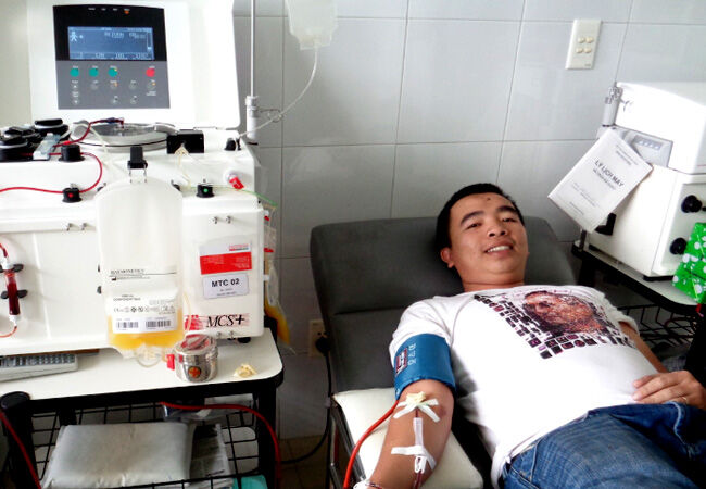 Anh Huỳnh Văn Được trong 1 lần tham gia hiến tiểu cầu