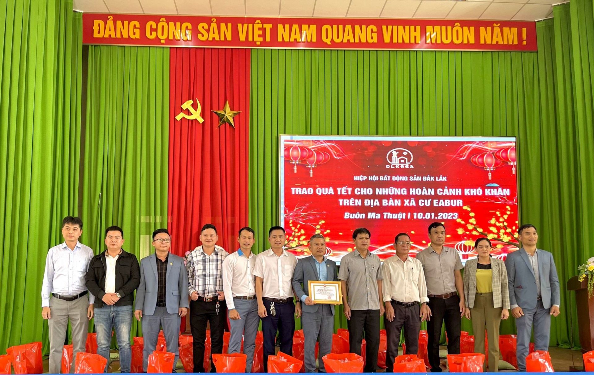 Hiệp hội BĐS Đắk Lắk đã trao 120 phần quà trị giá 300.000đ/1 phần quà cho 3 xã, lần lượt tại Trung tâm văn hóa Xã Cư E Bur, Thành phố Buôn Ma Thuột; UBND Xã Cư Bao, Thị xã Buôn Hồ và UBND Xã Cư Né, Huyện Krông Buk.