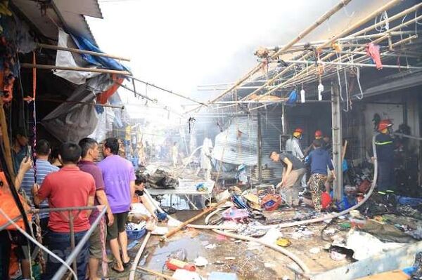 Sau đám cháy, các kiot hàng hóa tan hoang, lửa thiêu rụi vải vóc, quần áo chứa bên trong. Nguyên nhân và thiệt hại do vụ cháy gây ra đang được thống kê, làm rõ.