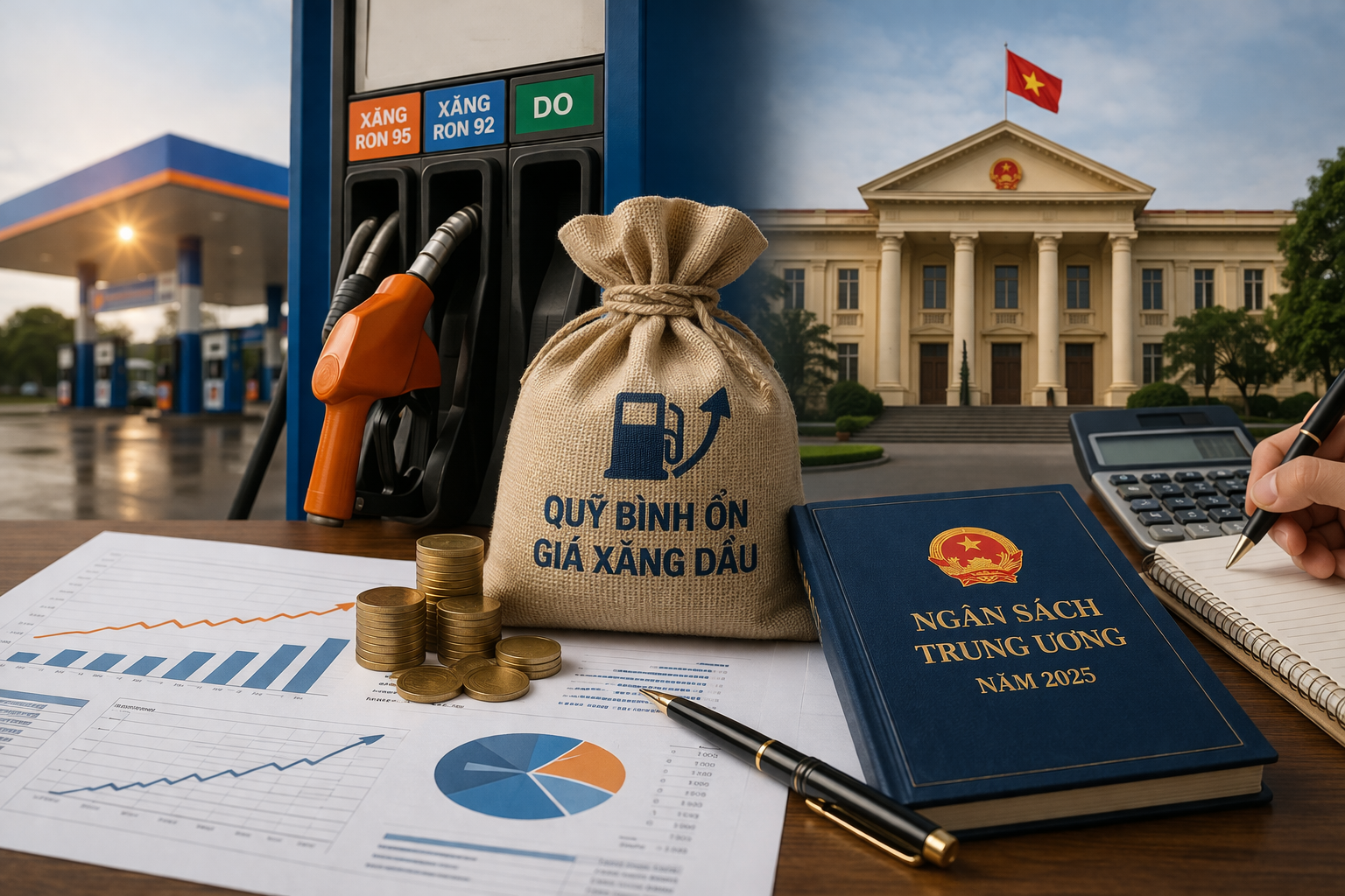 Minh họa việc triển khai chi tạm ứng cho Quỹ Bình ổn giá xăng dầu từ nguồn tăng thu ngân sách trung ương năm 2025