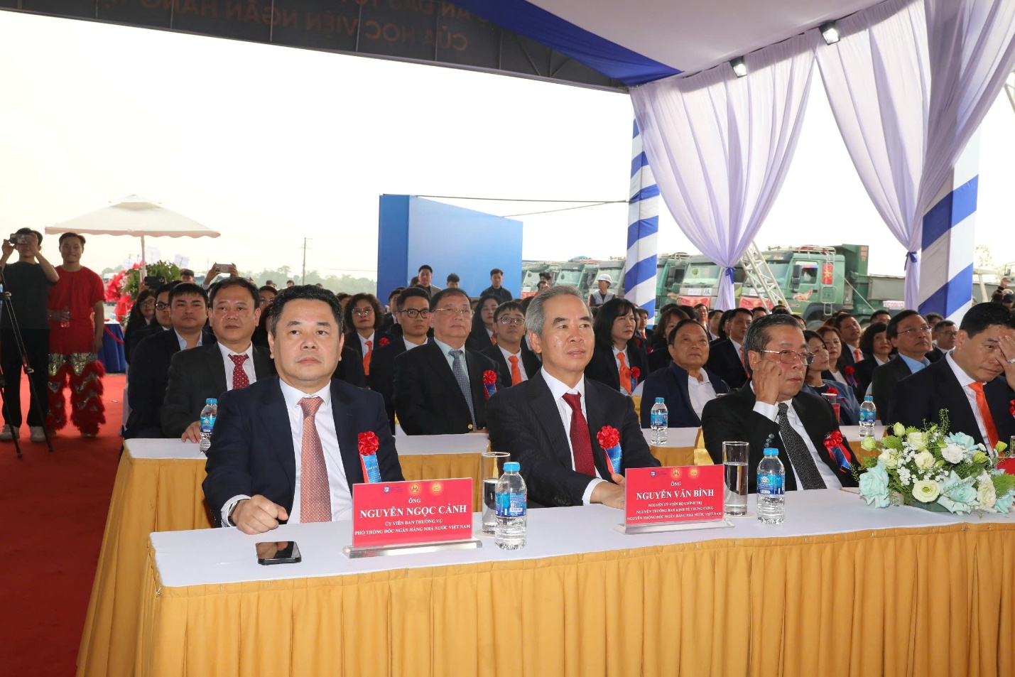 Dự lễ khởi công có các đồng chí: Nguyễn Văn Bình, nguyên Ủy viên Bộ Chính trị, nguyên Trưởng Ban Kinh tế Trung ương, nguyên Thống đốc Ngân hàng Nhà nước Việt Nam; Nguyễn Ngọc Cảnh, Phó Thống đốc Ngân hàng Nhà nước Việt Nam; Lê Xuân Huy, Tỉnh ủy viên, Phó Chủ tịch HĐND tỉnh; lãnh đạo Ban Quản lý Khu Đại học Nam Cao và Khu Công nghệ cao tỉnh Ninh Bình; lãnh đạo Học viện Ngân hàng; lãnh đạo các sở, ban, ngành của tỉnh Ninh Bình và phường Hà Nam cùng đại diện đơn vị thi công, tư vấn.