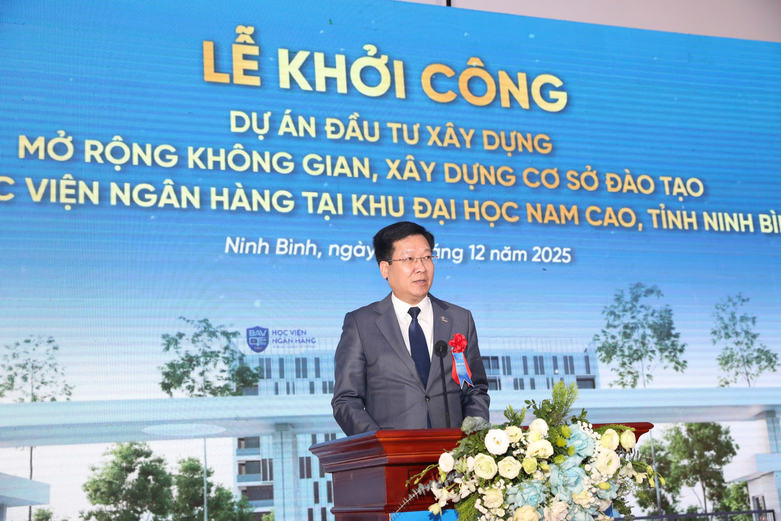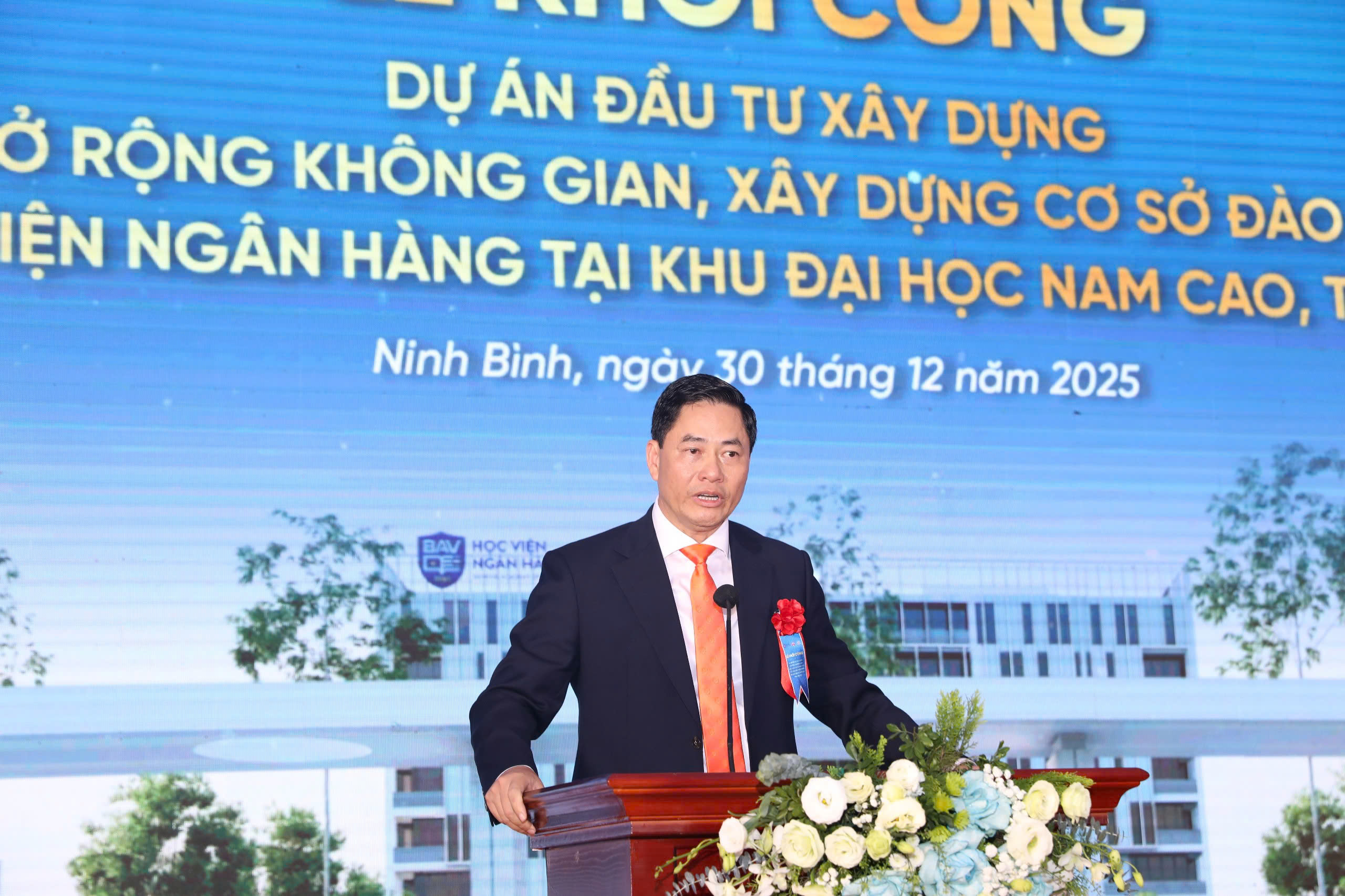 Phát biểu tại buổi lễ, lãnh đạo UBND tỉnh Ninh Bình nhấn mạnh: phát triển giáo dục - đào tạo, đặc biệt là đào tạo nguồn nhân lực chất lượng cao, luôn được tỉnh xác định là nhiệm vụ chiến lược, mang tính then chốt đối với phát triển kinh tế - xã hội nhanh và bền vững. Dự án cơ sở đào tạo của Học viện Ngân hàng tại Khu Đại học Nam Cao là minh chứng sinh động cho chủ trương đó, đồng thời là bước đi cụ thể hóa các nghị quyết, định hướng lớn của Đảng về đột phá phát triển giáo dục và đào tạo.